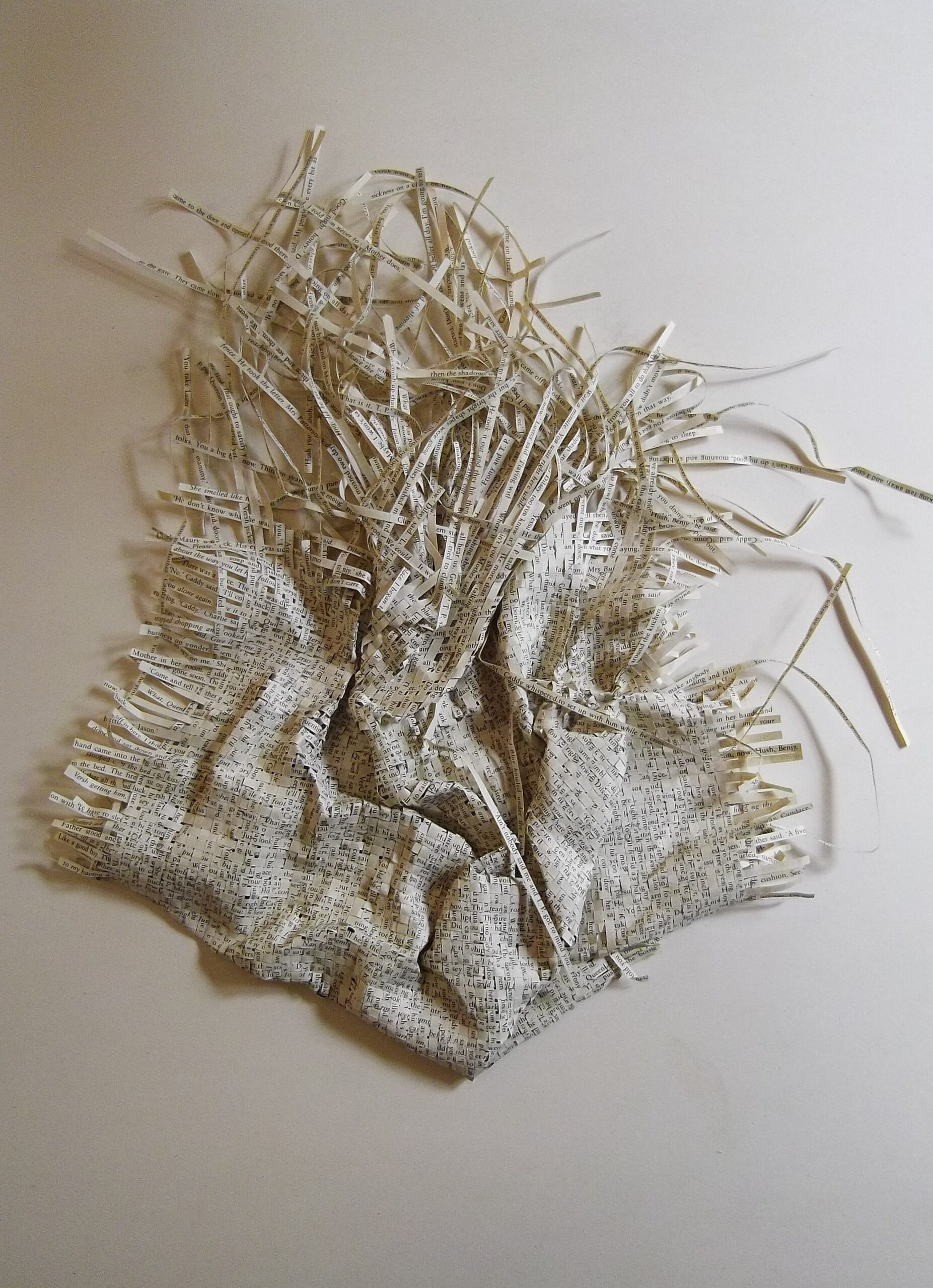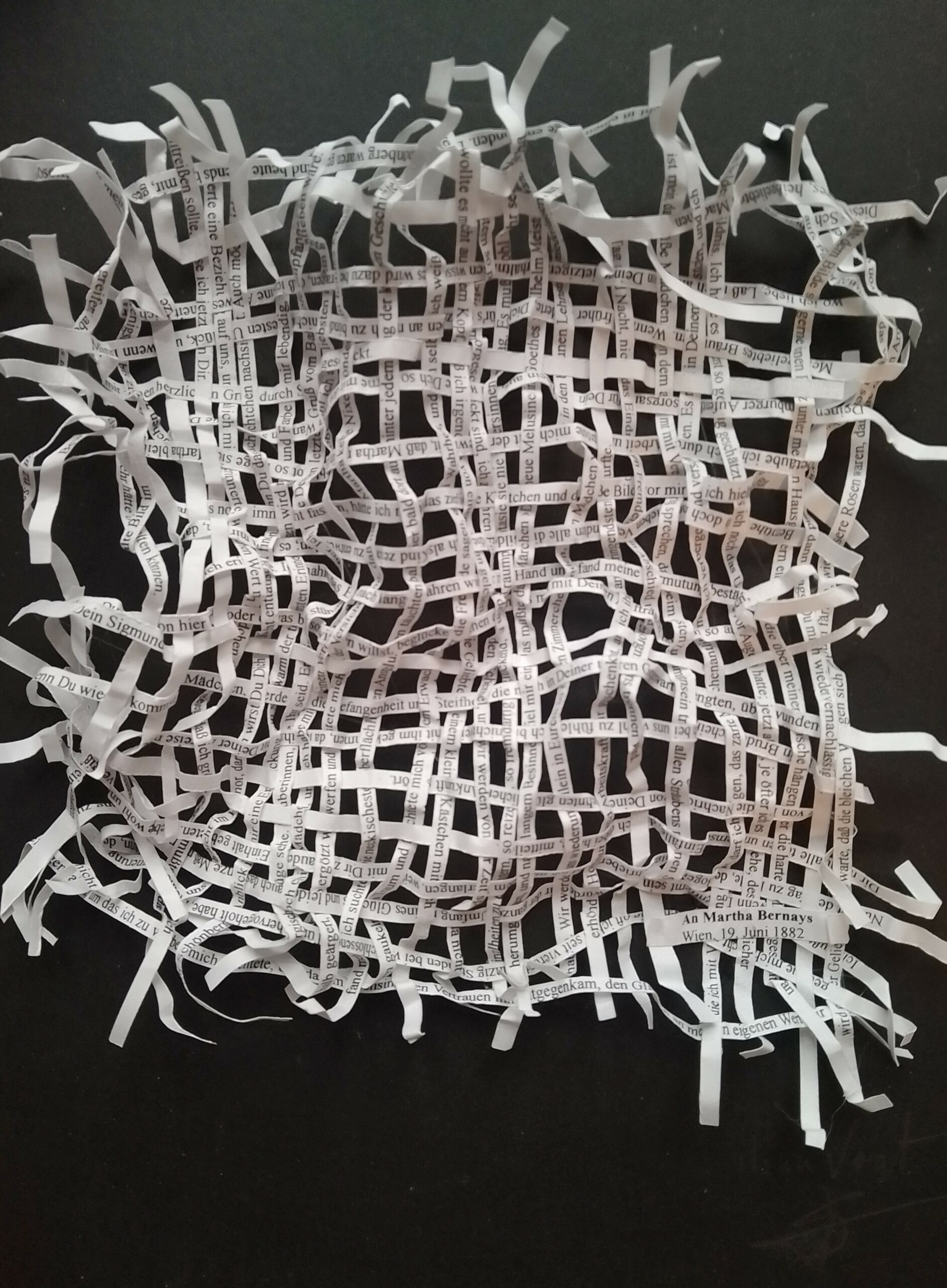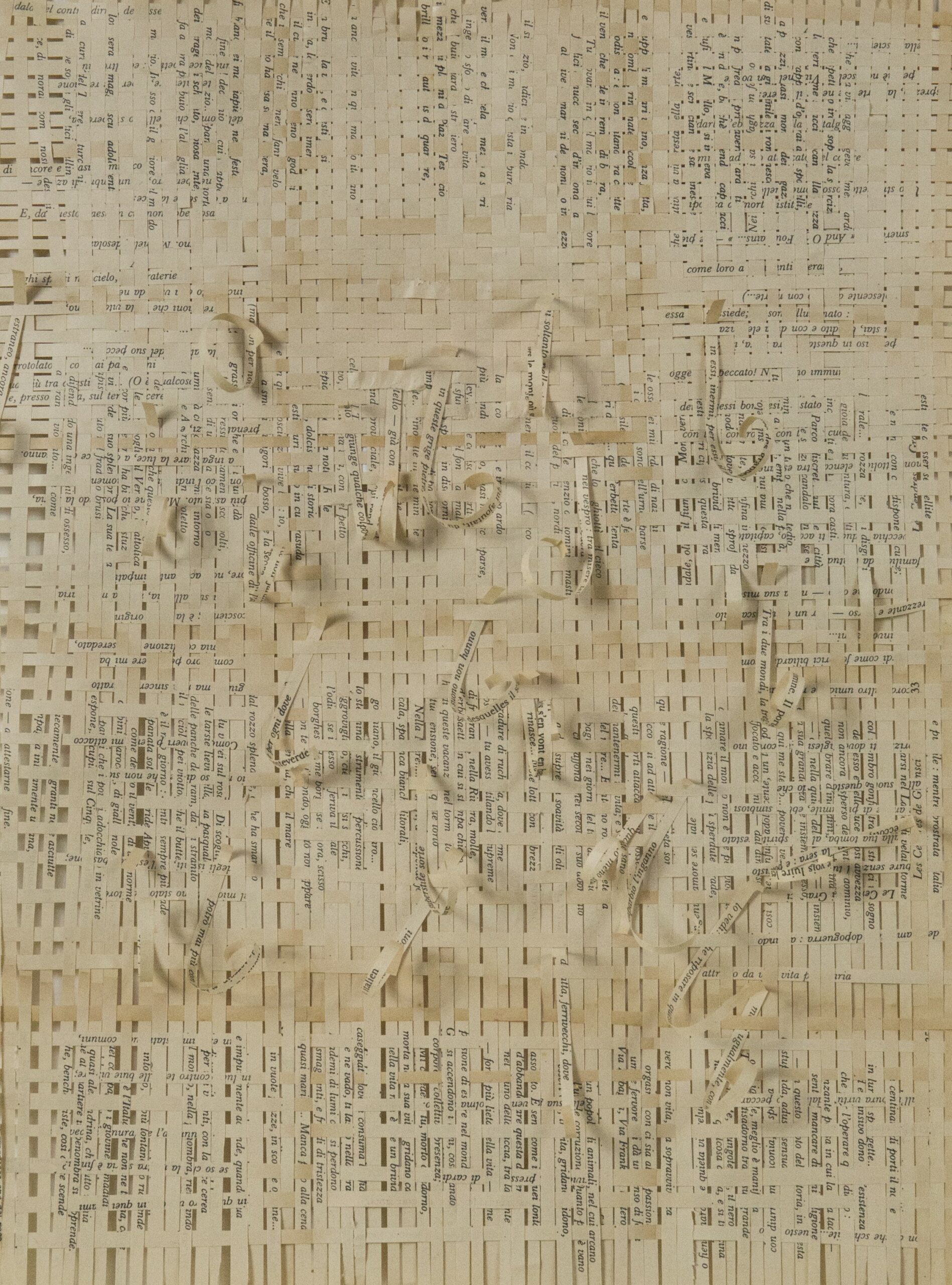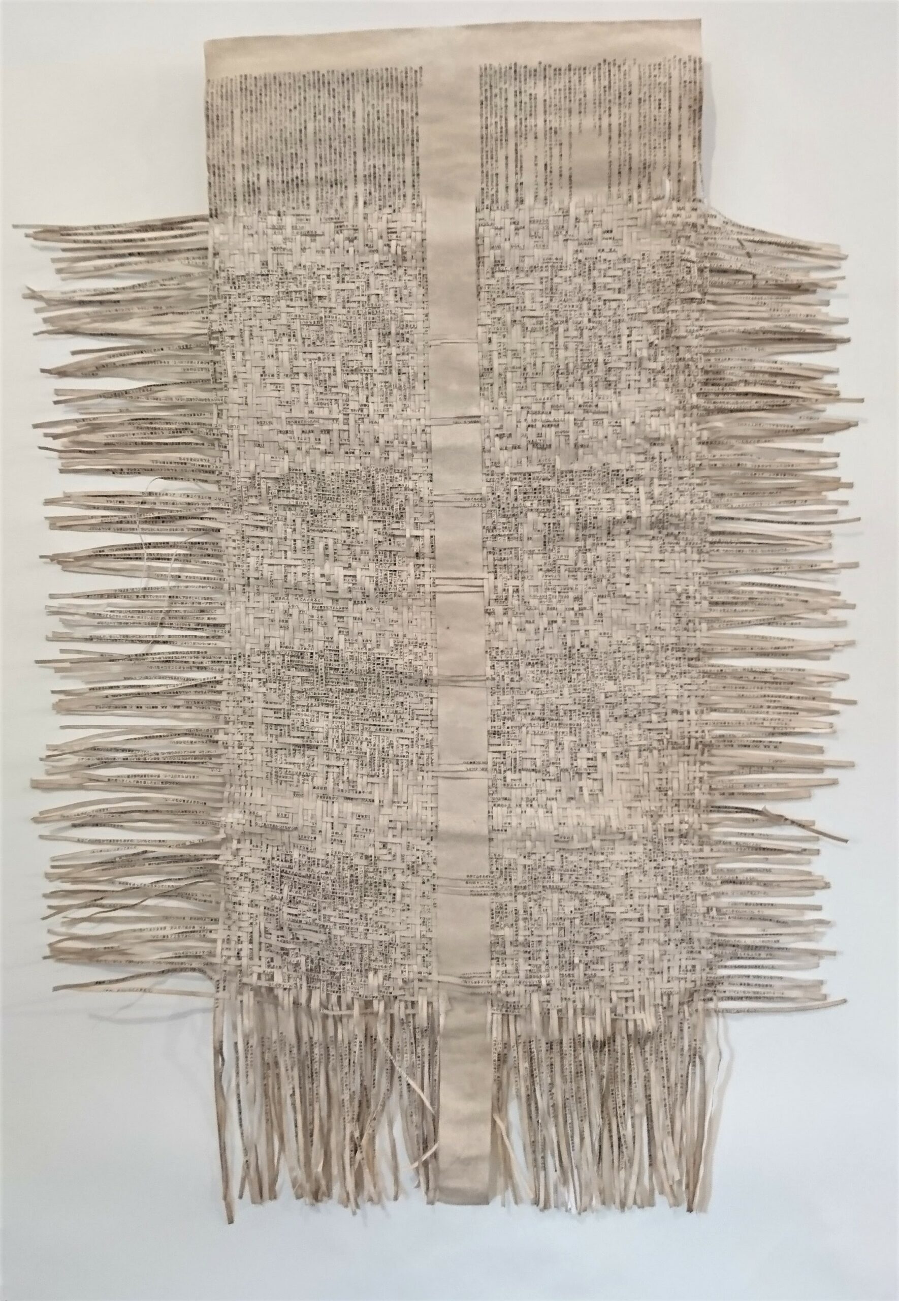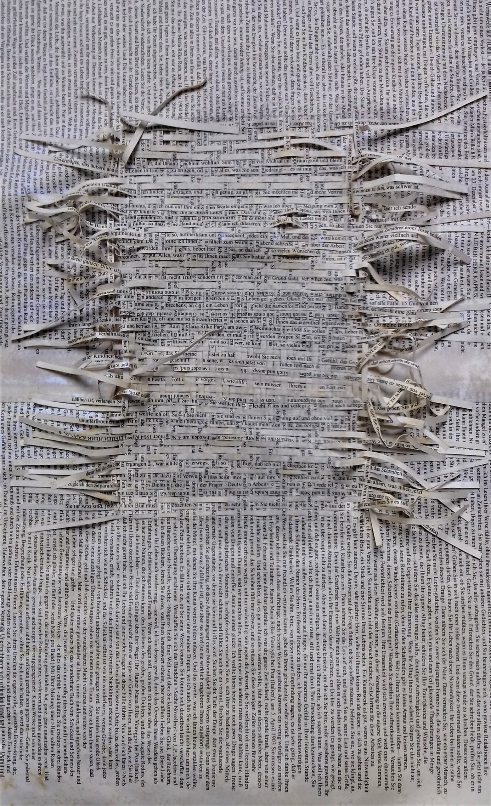 Textes littéraires tissés intégralement dans la langue d’origine. C’est la question de l’infini du livre, le paysage sans fin de la fiction. L’imaginaire est un territoire sans limites. Ce projet de monument de Babel » vise à donner une perception d’un océan de fictions. A l’image de La bibliothèque de Babel, une fois tissé ce sont des textes que l’on peut voir, que l’on peut sentir. Le livre donne une image. Il est traduit dans une langue qui n’est pas la sienne, celle de l’art visuel, de l’art textile. C’est un travail sans fin, un travail de Pénélope donnant corps aux livres. Il y a dans le processus de tissage la création d’un labyrinthe. Chaque livre est traduit en textile dans son intégralité, sa langue d’origine à la main. Depuis 2011, Ilann Vogt travaille à la métamorphose de la fiction, se perd dans les livres. A ce jour près de 400 textes furent tissés. Les livres font de ce projet une bibliothèque en perpétuelle augmentation.