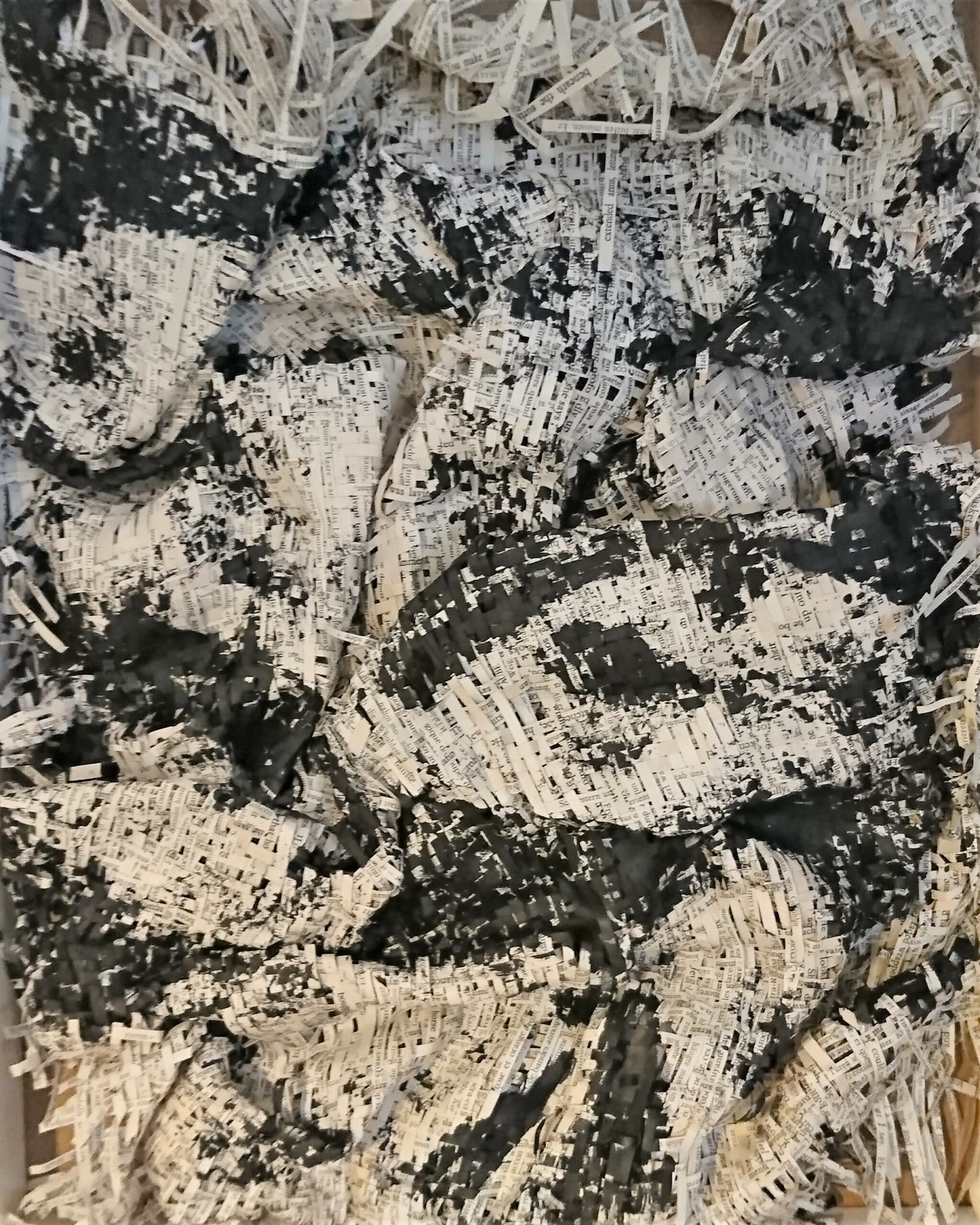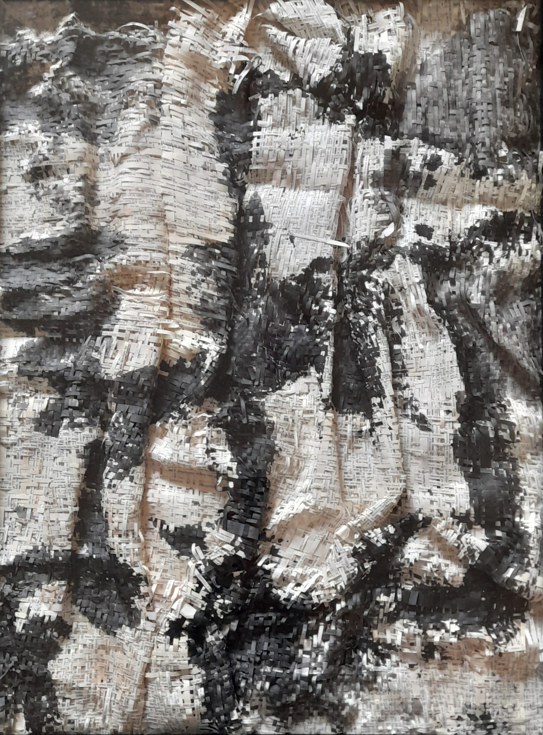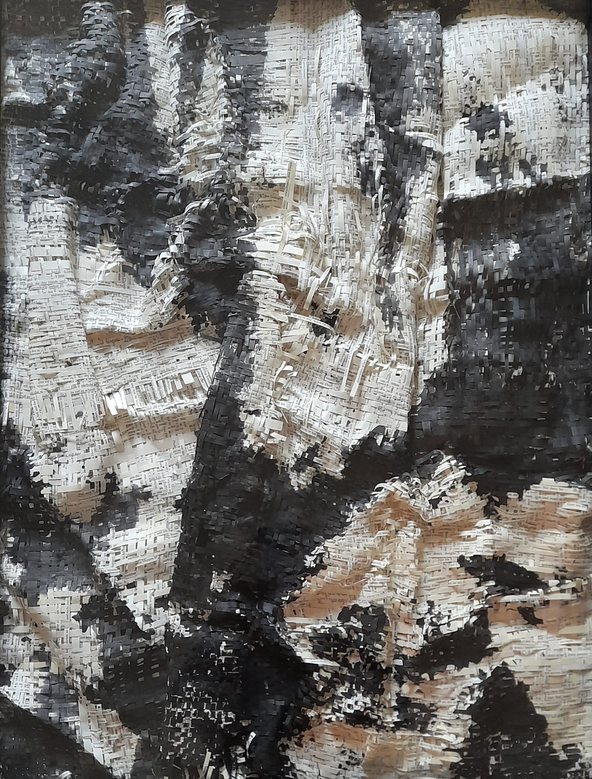 A l’image d’un tissu qui revient à l’origine d’un pli, à l’image d’un caractère typographique qui retourne à sa matière d’encre, au texte qui revient au textile. C’est un travail qui oeuvre à découvrir son inconnaissance.